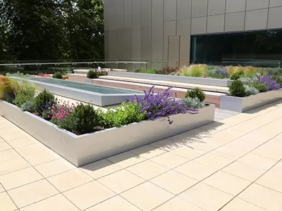 户外花箱通俗来讲是一种在户外的大花盆,随着时代的发展,花箱的种类和类型也是发生了很多的变化,有一种铝板花箱在外观上面是非常接近不锈钢花箱的,但是铝板花箱除了有不锈钢的灰色颜色外,还有很多其他的颜色,这是不锈钢花箱所不能相比的。在诸多花箱中被大家所选择多的就是这种铝板花箱。