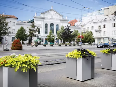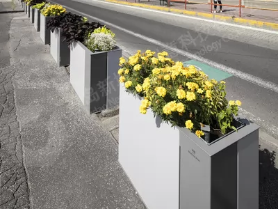 当我们行走在城市的大街上时会发现有些城市的道路中间原本看上去冷冰冰的金属道路护栏变成了一个个栽种着姹紫嫣红的各式鲜花的花箱,这就是所谓的道路花箱护栏,它会在道路中间形成一条整齐美观的彩色花带,让我们行走在道路上感觉更温馨。
