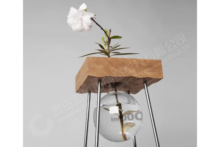 米莉水养插花花器金属部分不锈钢材质数控焊接成型,表面静电喷塑,木材部分进口柳桉木,表面水性木器喷涂。