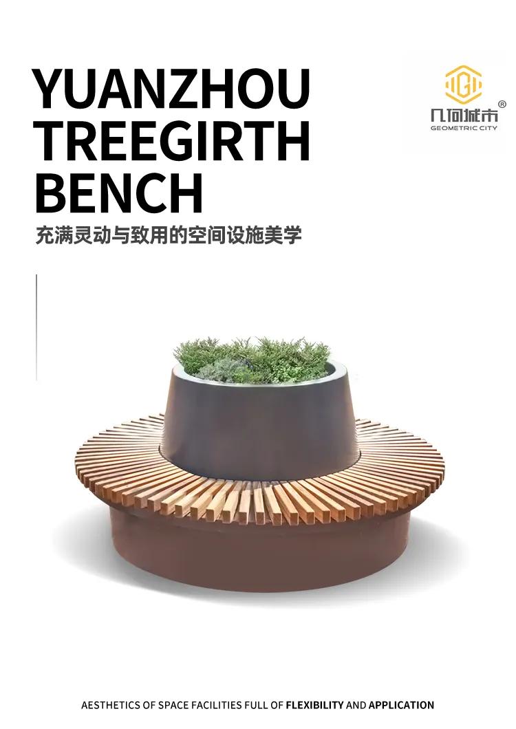 园洲围树座椅金属部分是碳钢板数控激光切割焊接成型,表面喷塑,木材部分进口柳桉木,表面户外水性木器漆喷涂。公园圆形树池坐凳可以让我们在城市生活中感受到自然的气息和舒适的时光。
