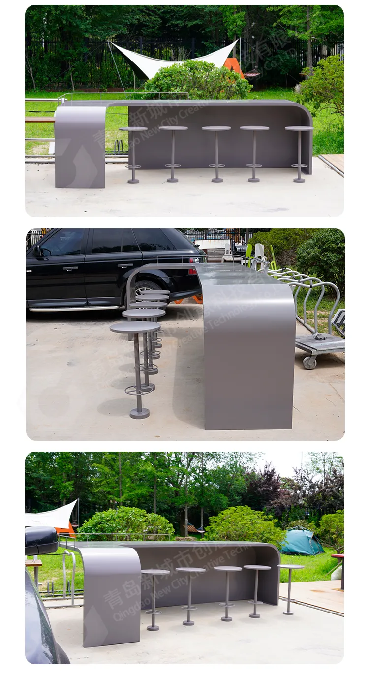 沃尔特吧台桌椅组合采用不锈钢激光切割焊接组合,表面烤漆处理。吧台桌椅组合适用于露天广场,商业街等场所。