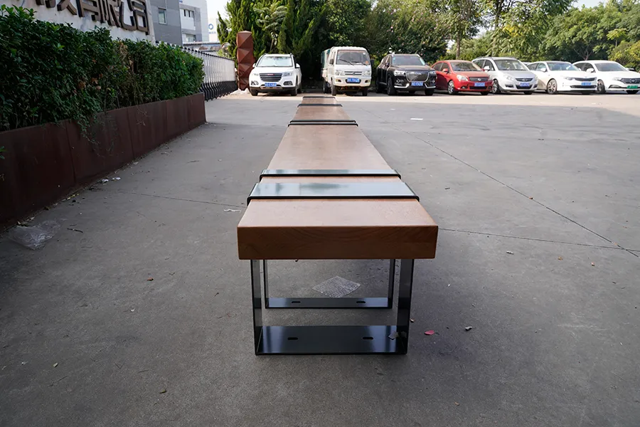 伊夫林坐凳金属部分采用碳钢板激光切割焊接成型,表面喷塑,木材部分采用进口柳桉木,表面户外水性木器漆喷涂。公园凳是一种设在公园或公共场所供人们休息和坐下的设施,通常适用于广场,公园,景区凳公共场所。